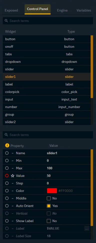Actions can use properties from running levels, as well as from other widgets on the canvas