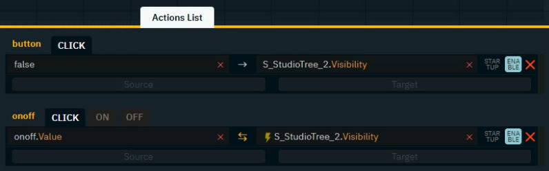 To automatically trigger an action when switching to Live mode, enable the "STARTUP" toggle