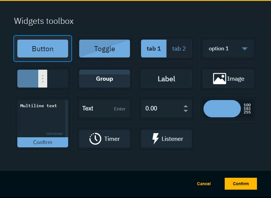OR select it and click "Confirm"Click and drag on the canvas to place/draw the widget