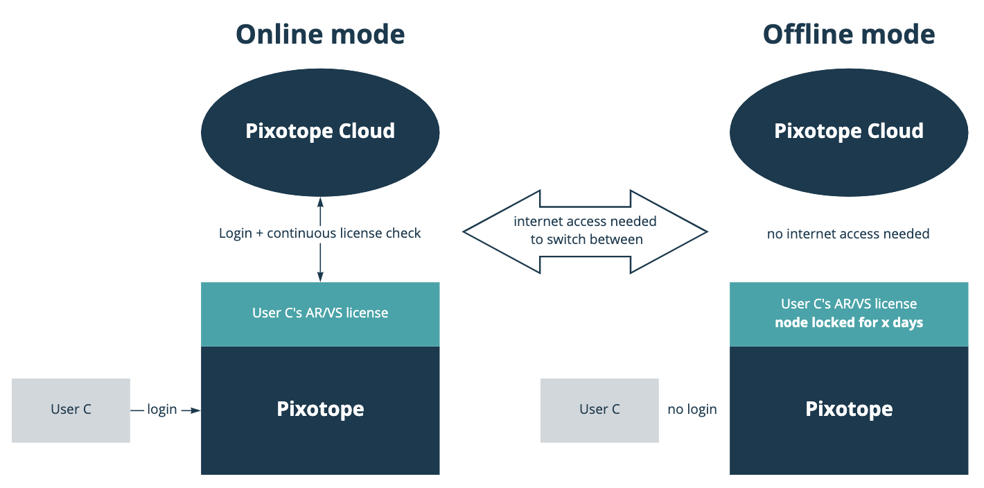 Pixotope uses a subscription model for licensing, which allows customers to create their own users and assign licenses to them.