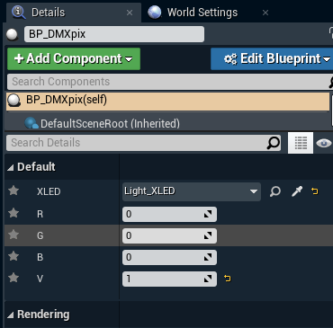 Select our Blueprint actor on the left side, "BP_DMXpix"