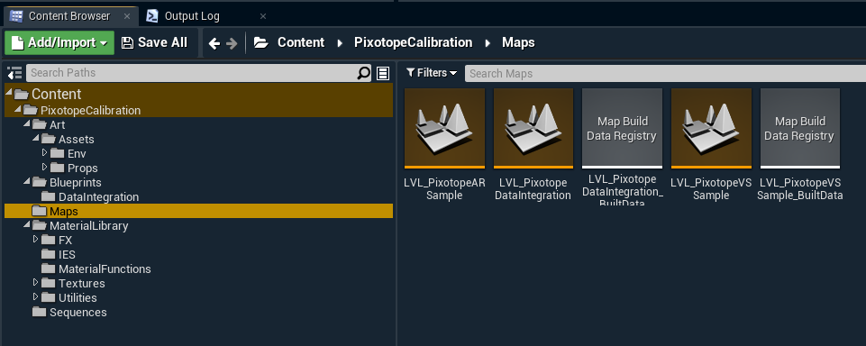 Under Content/PixotopeCalibration/Maps you will find multiple different levels.