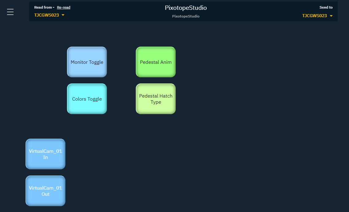 With the included control panels you are able to control the actions set up in the level. We made them colorful and clear. Feel free to edit the panels and move things around to your liking, or even use them from your phone, tablet, laptop or similar by copying the URL from the hamburger menu, top left in the control panel page (you need to be on the same network).