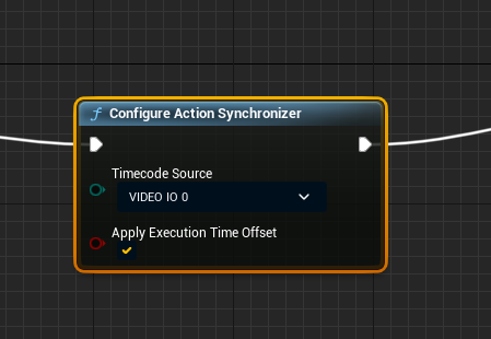 Use the node Configure Action Synchronizer to select which timecode to use and whether to apply the API delay you configured in the Director’s Sync panel.