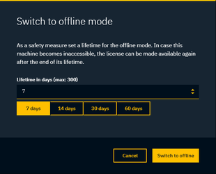 Do not choose a longer duration than necessary. If the machine crashes and cannot boot anymore, the license cannot be released until the end of this duration.