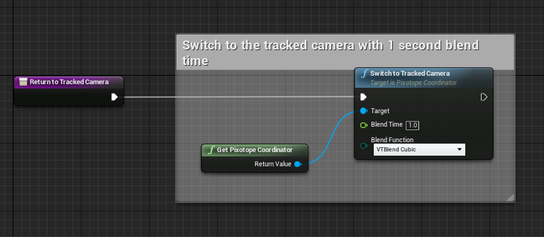 Create triggers in the control panel and link them to the 2 Blueprint functions to trigger the animation between the virtual and the tracked camera from the control panel: