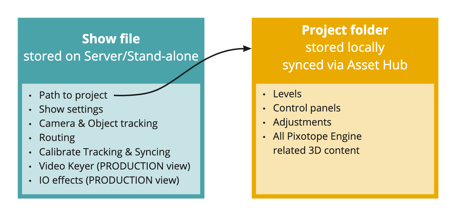 Show files (.pxshow) are specific to an installation and therefore stored in
