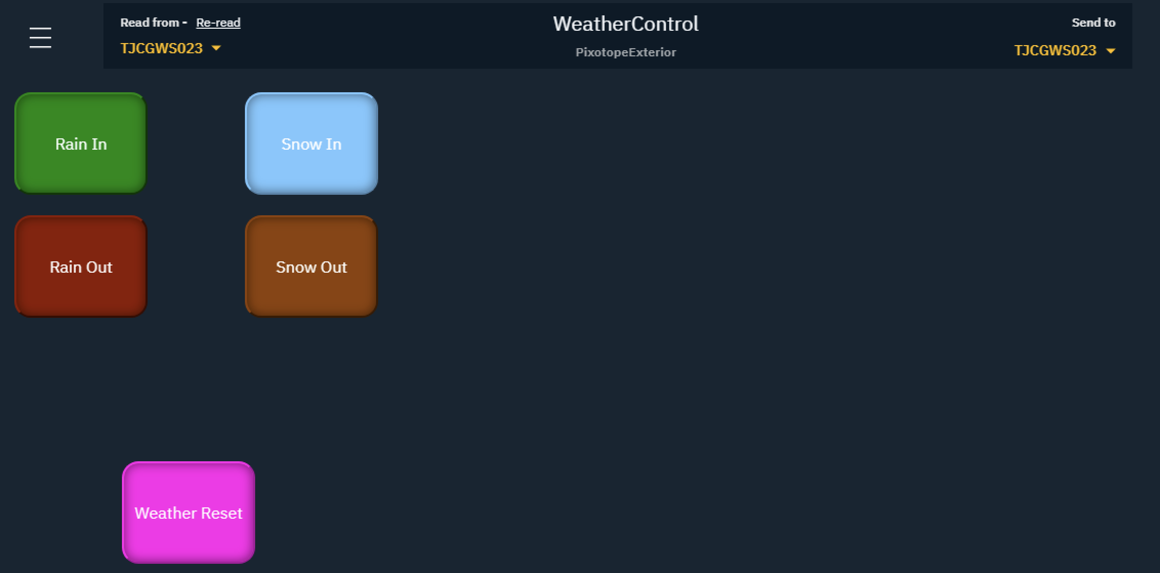 With the included control panels you are able to control the actions set up in the level. We made them colorful and clear. Feel free to edit the panels and move things around to your liking, or even use them from your phone, tablet, laptop or similar by copying the URL from the hamburger menu, top left in the control panel page (you need to be on the same network).