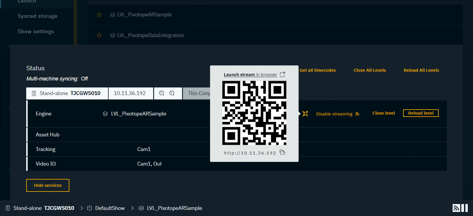 Click on the QR code icon and then on "Launch stream in browser" or use the QR code or its IP address