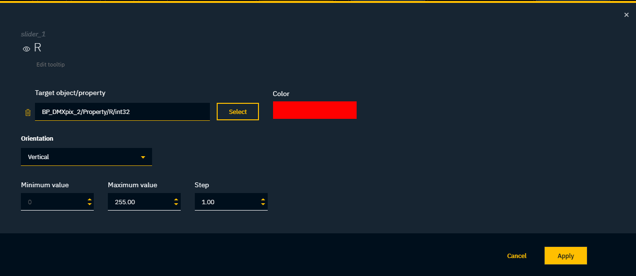 Click "Select" to set the target object/property which will be controlled by the slider
