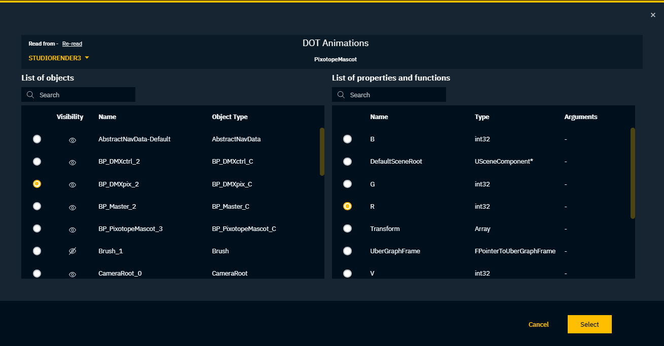 Select our Blueprint actor on the left side, "BP_DMXpix"