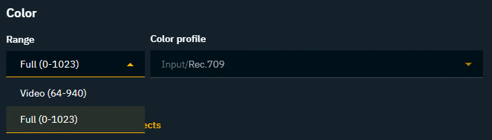 Optionally: Adjust the SMPTE Color range and the Color profile