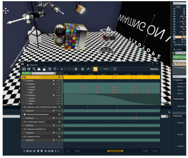 In the Content browser, double-click the "MyAnim" Level sequence. This opens the Sequencer. The Sequencer is one of the many ways you can animate content in Unreal. Here you can, for example, add keyframes to the transforms and make an animation