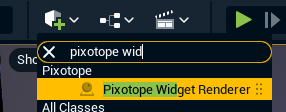 Search for Pixotope Widget Renderer in the Spawning Mode or the Place Actors tab and add it to your level