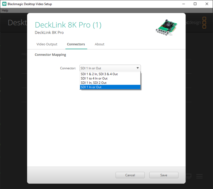 SDI 1 In or Outin the Blackmagic Desktop Video Setup application