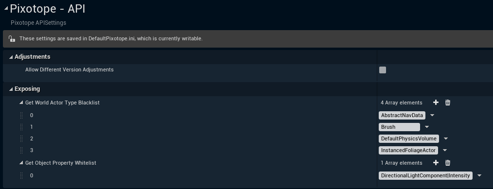Get World Actor Type Blacklist - Defines which actor types should be ignored when responding to GetWorld API call.