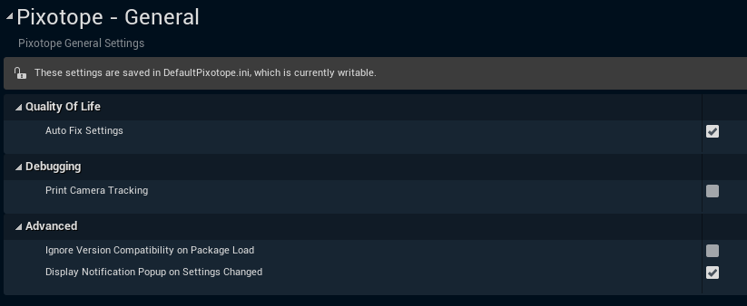 Display Notification Popup on Settings Changed - Enables a popup notification anytime a Pixotope setting change was observed.