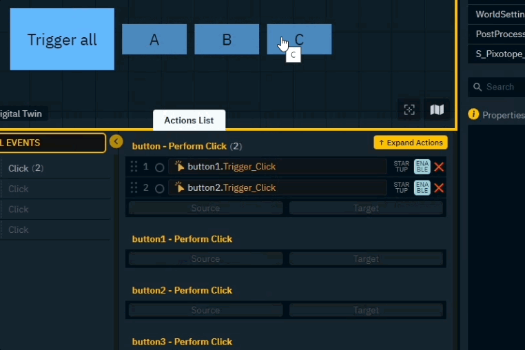 Actions can use properties from running levels, as well as from other widgets on the canvas
