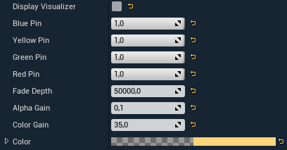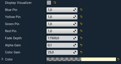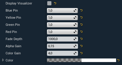 Blue/Yellow/Green/Red Pin | Sets the light opacity gradient for each corner of the plane. If all pins are set to 1.0 the shape becomes spherical. |