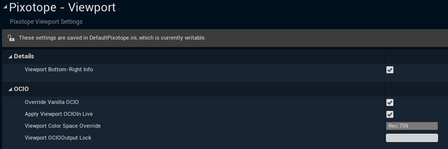 Override Vanilla OCIO - Enables Pixotope OCIO preview in the viewport.