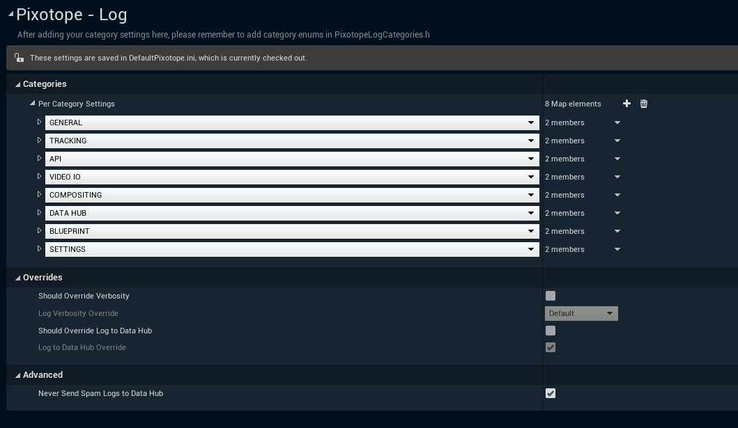 PerCategorySettings - Defines how verbose should be each log category and if it should be comunicated to the network. Setting some categories to Spam can provide useful insights.