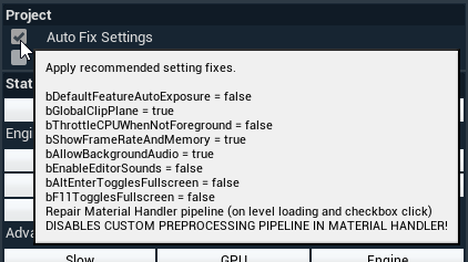This applies a set of recommended project and Editor setting fixes as listed in the tooltip.