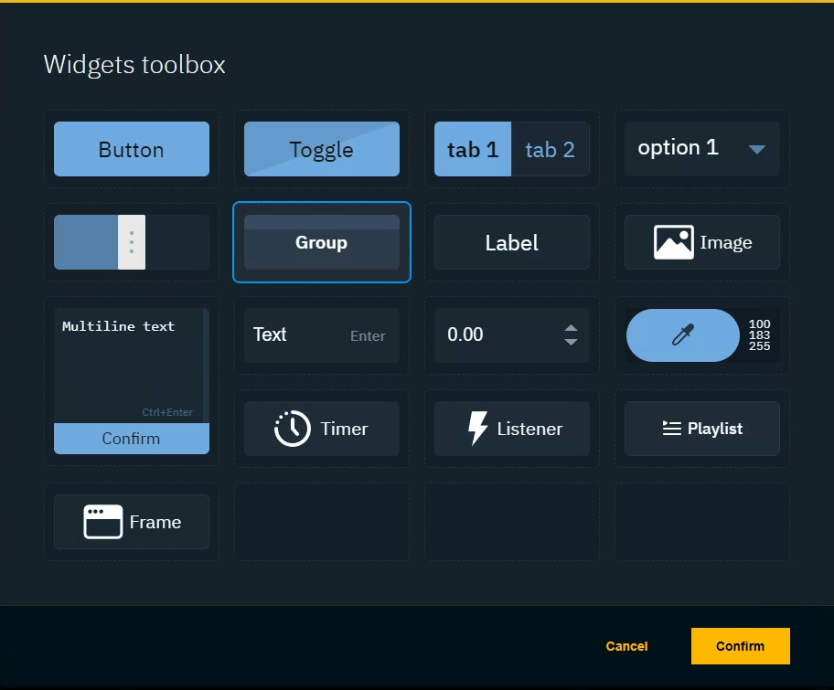 OR select it and click "Confirm"The widget is added to the canvas