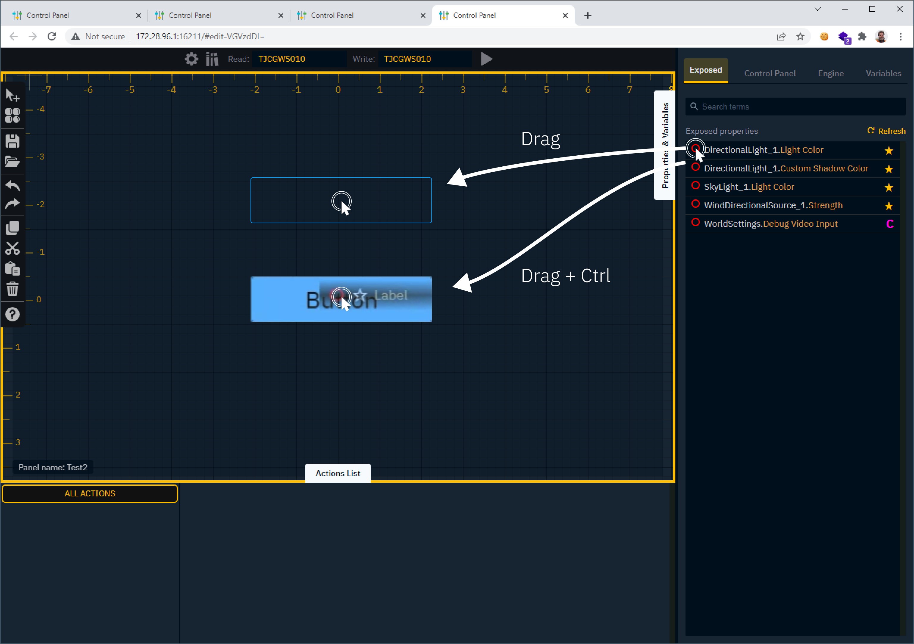 Drag property into the Actions drawer