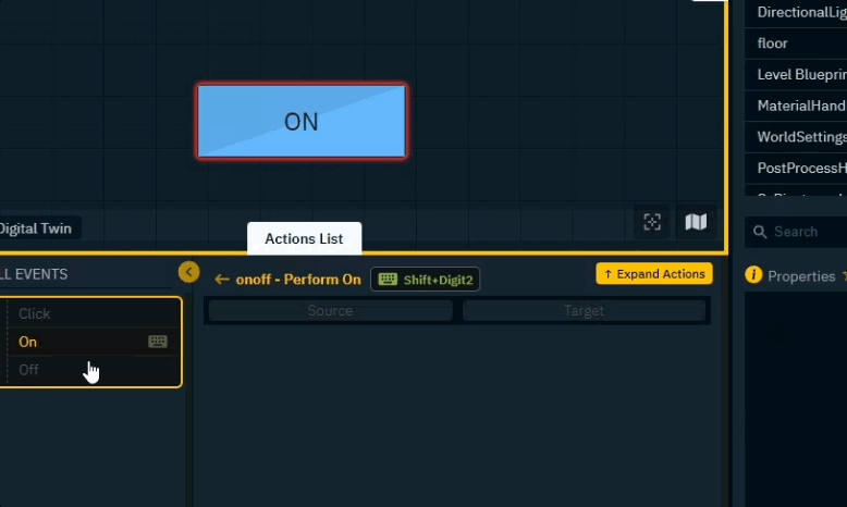 Drag property into the Actions drawer