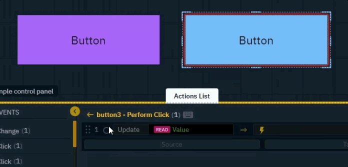 Actions can use properties from running levels, as well as from other widgets on the canvas