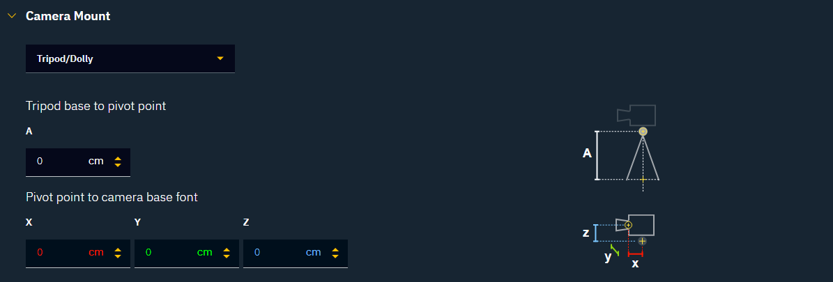 Depending on the camera tracking protocol, you can choose between up to 3 different camera mount types: