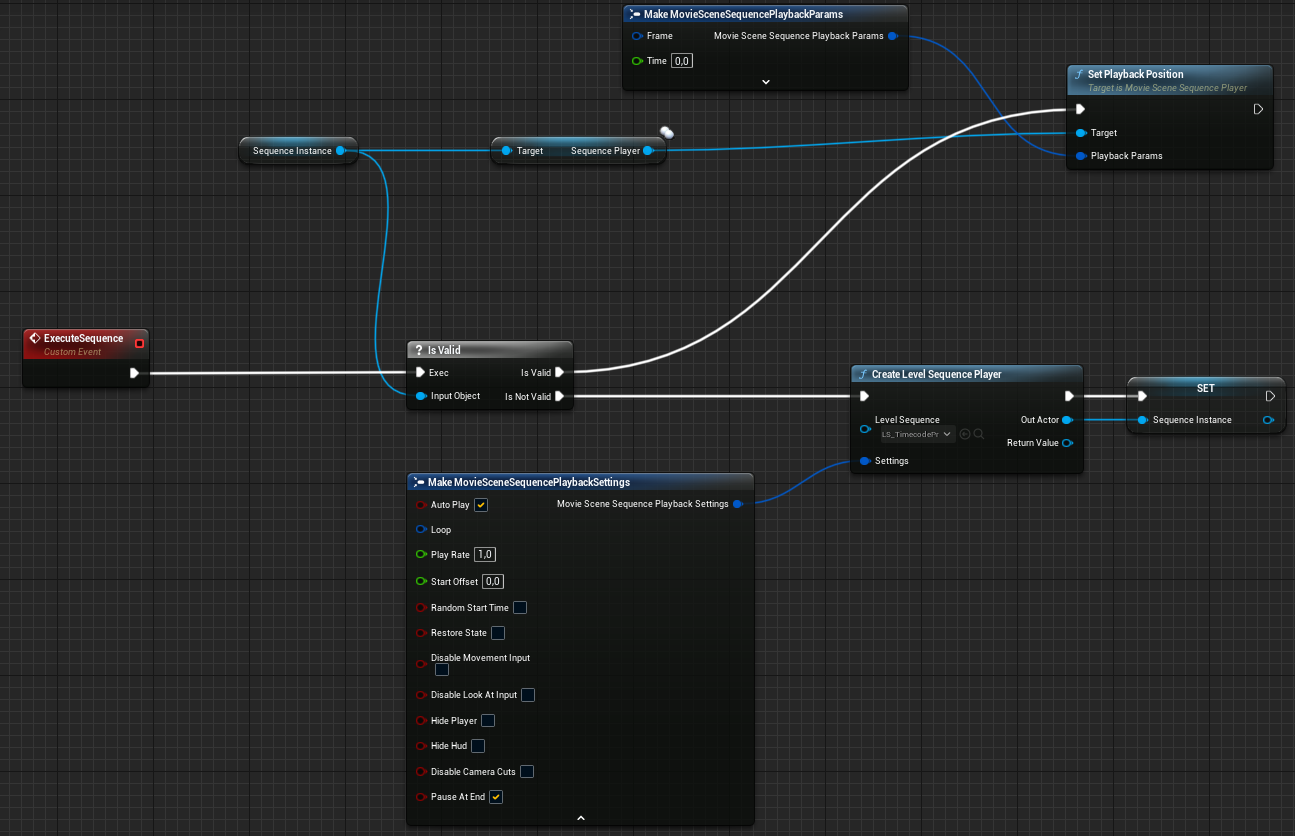 A more robust way of setting sequences can be built using Blueprints, this will be especially useful if you want to schedule your sequences to execute at a particular timecode or if you are experiencing frame-drops and desynchronization when testing your production.