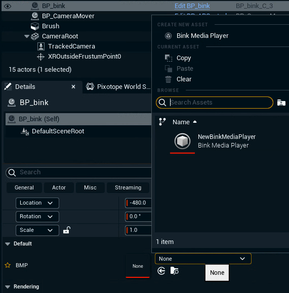 Select the Bink Media Player asset you had created before