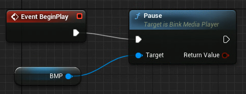 Add Bink Media Player > Pause function on BeginPlay using the Bink Media Player Object Reference as a target