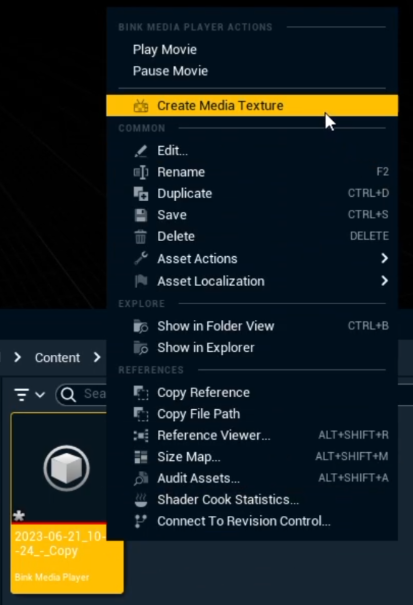 Right click the Bink Media Player asset in the Content Browser
