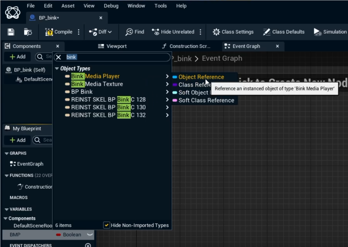 Create a Bink Media Player > Object Reference variable