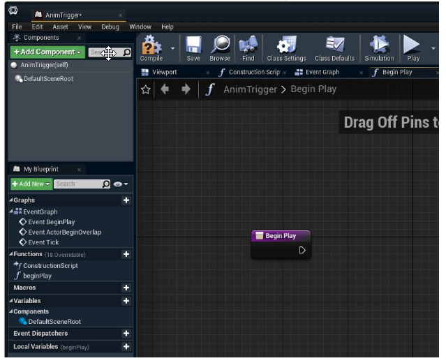Drag the BeginPlay function onto the canvas and select a Trigger widget