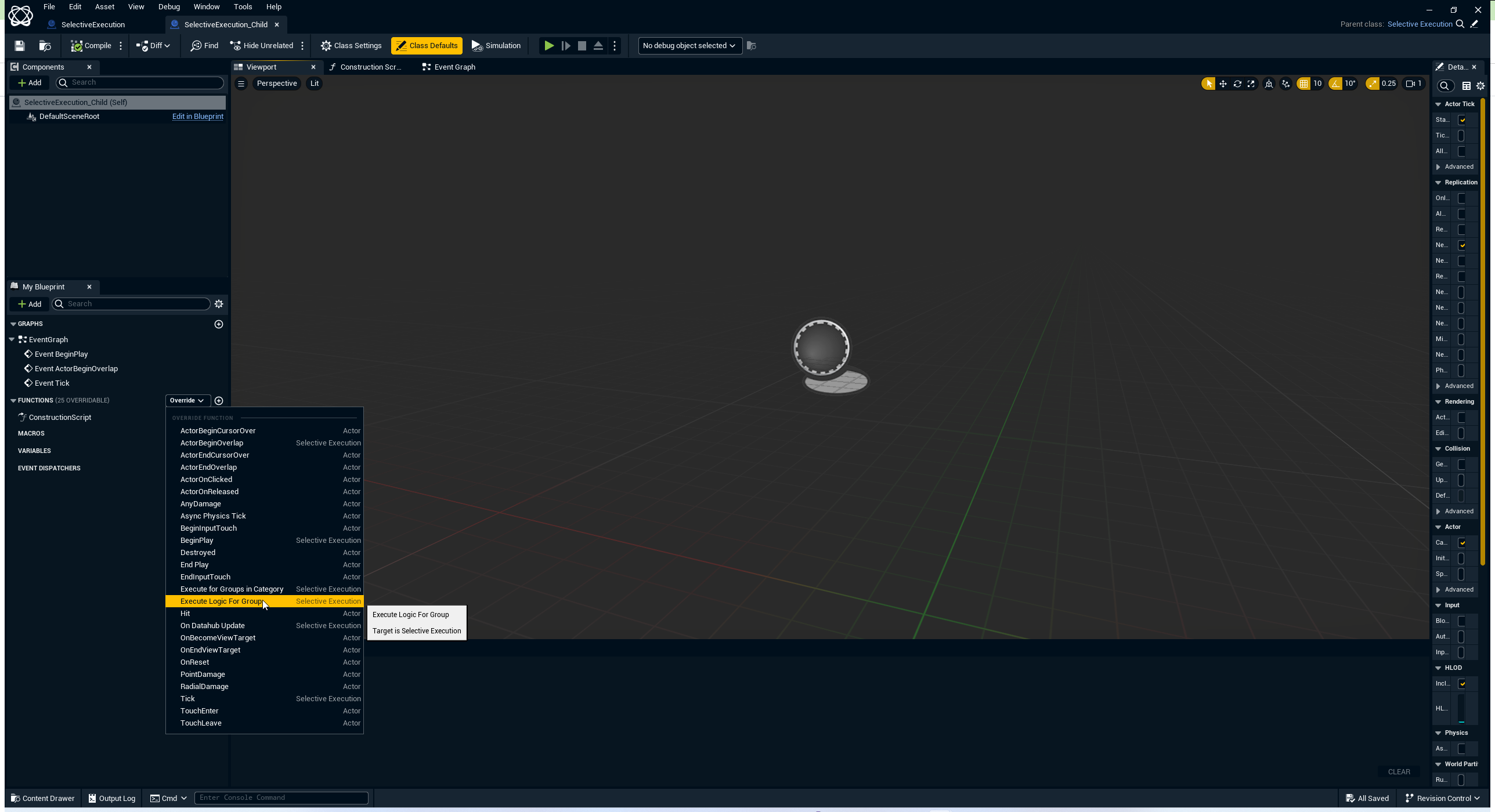 Open the child actor and override “Execute Logic for Group”.