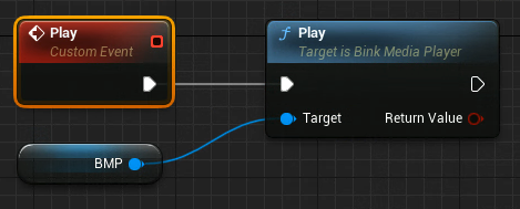 Add a Bink Media Player > Play function and add the Bink Media Player Object Reference as a target