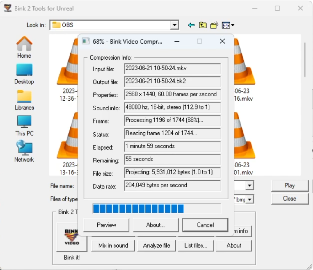 Convert video to bink