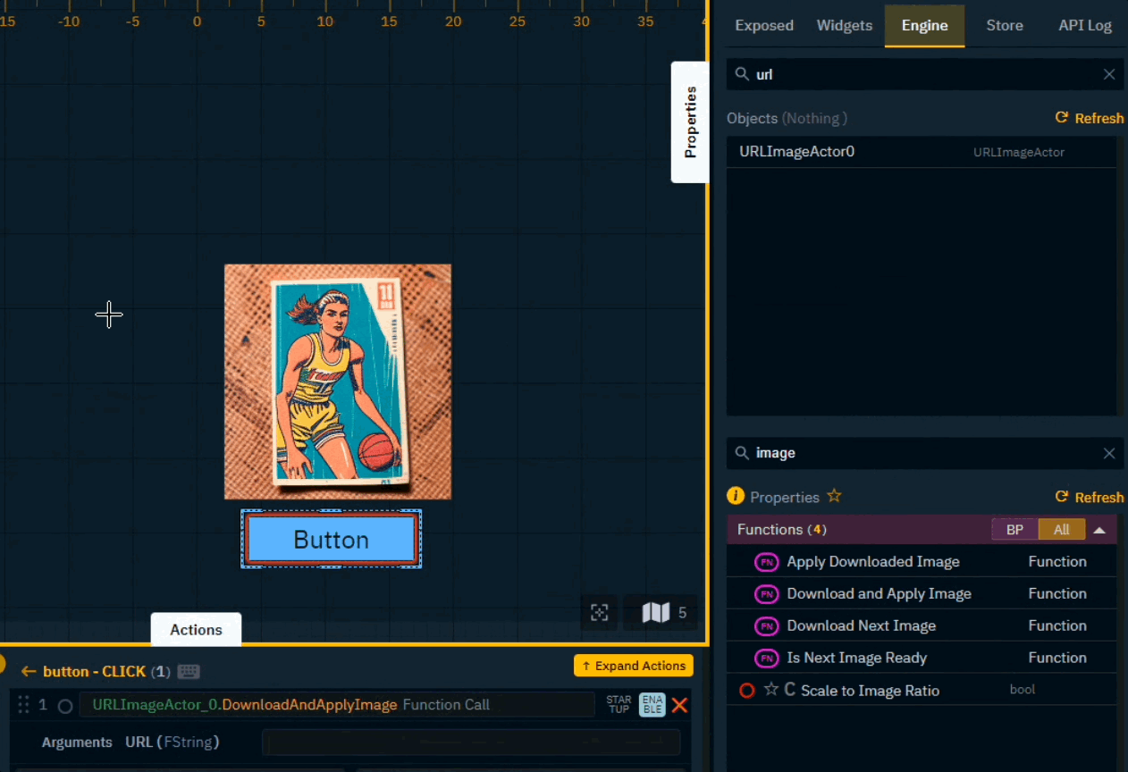 The URL Image Actor can be used to preload and display images from a URL in 3D space. It supports web links and local resources with the following formats: