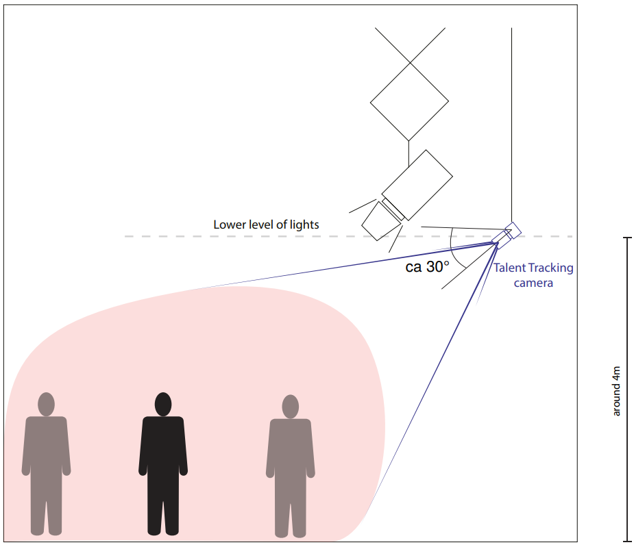 The cameras should be at a height of approx. 4 meters. They should be high enough so that no person or equipment can obstruct the cameras view and low enough so that no lighting equipment in the rig obstructs the view