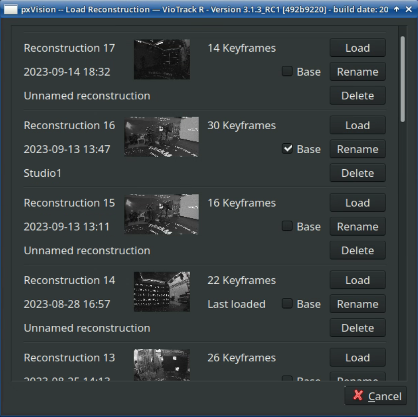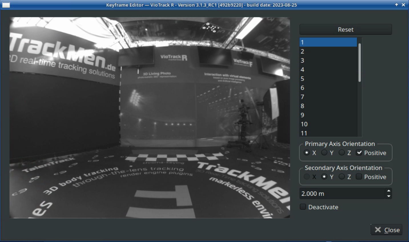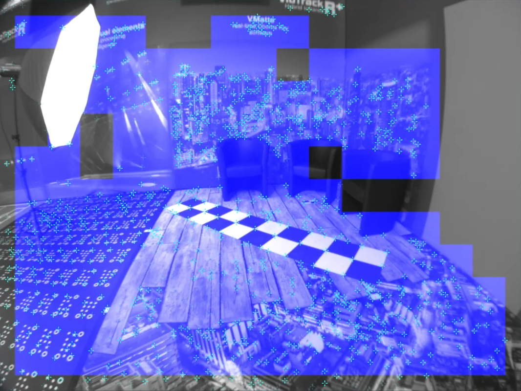 If the positions of feature points change because objects have been moved or illuminated differently, the program will disregards those points for tracking. If the changes become increasingly excessive the Reconstruction can easily be updated. Also adding new areas to the Reconstruction is an easy and quick process. The program allows to switch between different Reconstructions, for example when moving the camera into another studio or changing to another lighting.