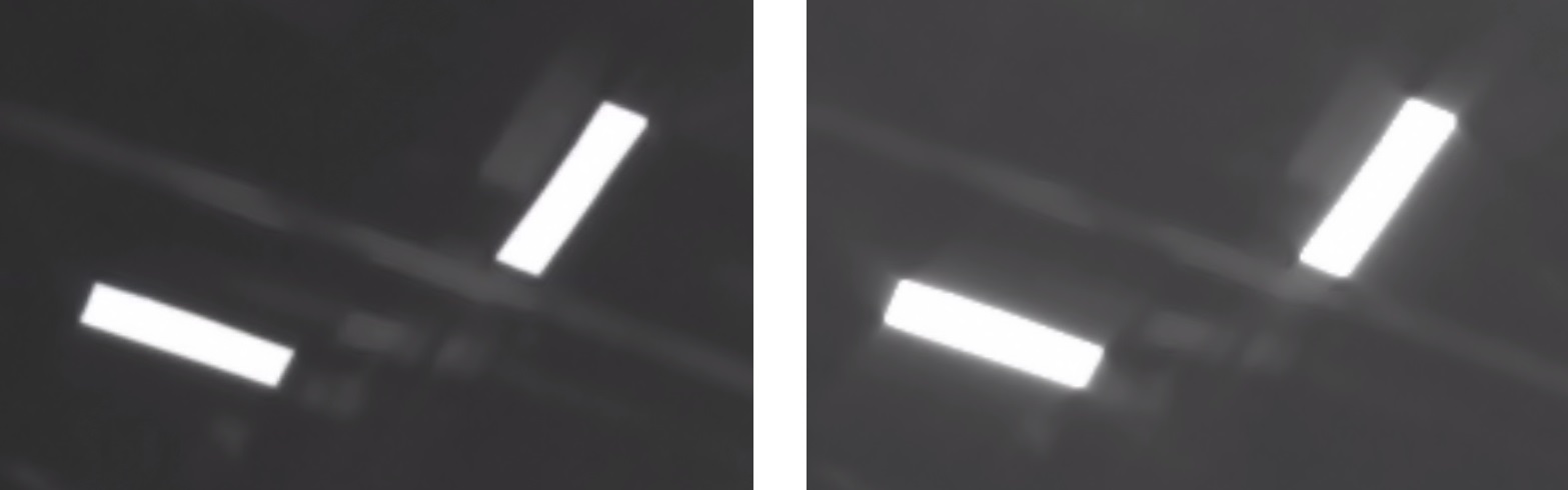 Illustration 5: Reflective stickers with correct (left) and excessive (right) Illumination time